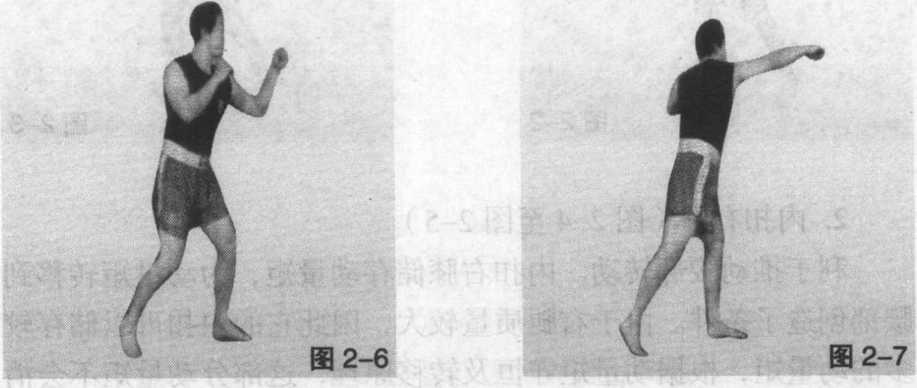 3左肩相对固定,迅速转腰送肩(图2-6至图2-7)
