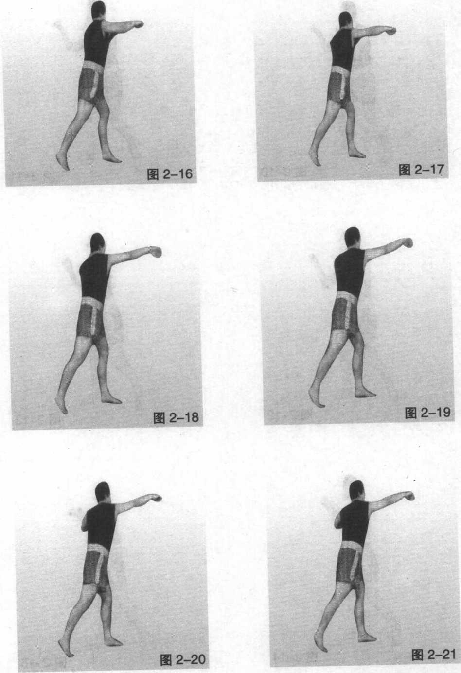 1右脚蹬地,重心前移(图2-2至图2-3 )