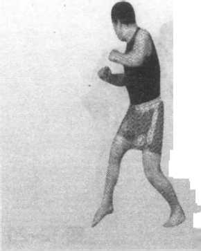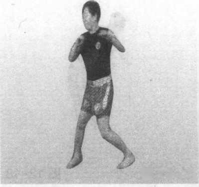 跟,可使髋关节的旋转基本绕中心轴运动,这样比绕左髋旋转半 径缩小将近一半,因此,可以减小旋转时间。(2)利于右转腰。 左膝关节的内扣储存旋转动量矩,储存的旋转动量矩转移到腰 部,有利于推动腰部转动,提高腰右转速度。(3)缩小打击距 离。扣膝外转脚跟,使髋旋转,有利于右脚接近直线蹬击对方。 转髋后右脚基本上正对对方,可以直接后蹬,这样右脚的启动点 和打击点基本上在沿直线运动(两点之间直线距离最近),因此, 扣膝外转脚跟,可缩短打击距离。