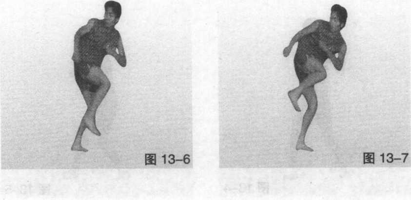 1?左脚跟外展,快速内旋左膝(图13-2至图13-3 )