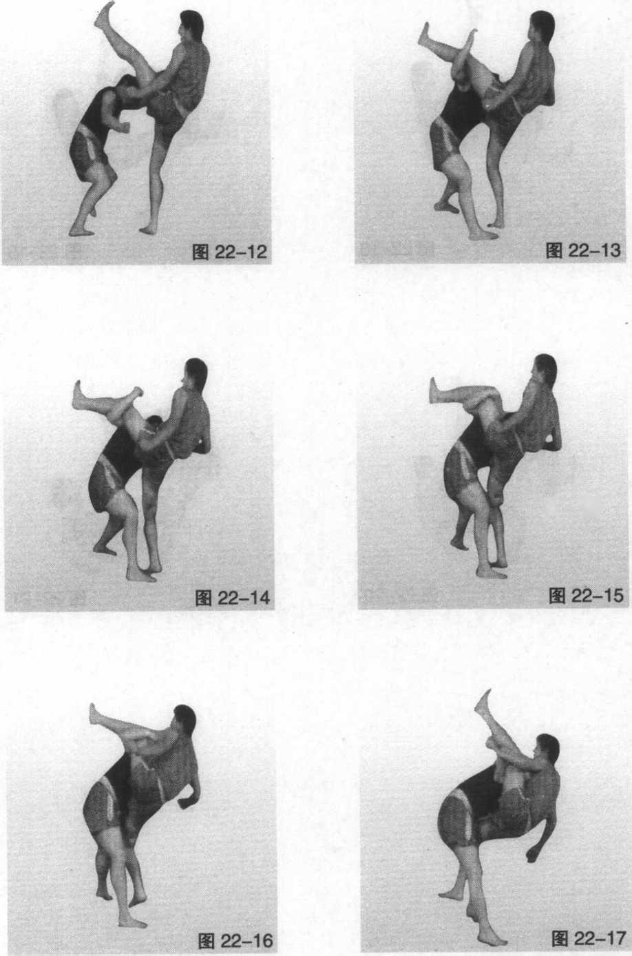 【掀腿搂膝摔连续图谱】(图22-4至图22-21 )