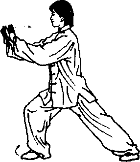 身法:上体微微右转再左转,胸向南稍偏西,重心左移。