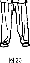 两脚分开,自然直立,与肩同宽,脚尖均向前,重心落于 两腿间。