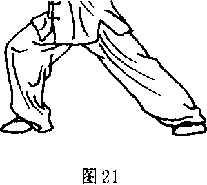 一腿屈膝半蹲,全脚着地,脚尖斜朝前,另一腿微屈,脚 前掌或脚跟点地。