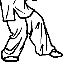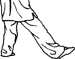 一腿支撑,另一腿提起经支撑腿内侧向前上步,脚跟先着 地,随着重心前移,全脚着地。