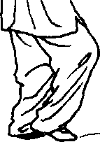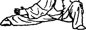 一脚全蹲,膝与脚尖稍外撇;另一腿自然伸直,平铺接近 地面,脚尖内扣,两脚着地。