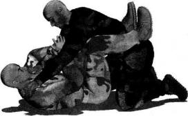 双腿交叉勾锁住对方腰胯部位要牢固但不必过于用力夹持要保持腰部机动灵活只有这样才可以随时放松双腿并借助对方的身体迅速拉开与对手的距离从而达到变换姿态的目的。