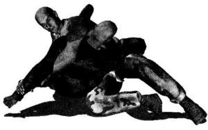 侧向压制时胸部要牢牢贴压在对方的躯干上防止对方翻滚逃脱。右手臂由对方肘下穿过时注意位置要准确正确的位置是肘关节外侧靠近大臂部位右臂向上撬动时力点也是作用于这个位置在右臂向上抬起的同时左手一定要将对方的左手腕牢牢按压于地面。