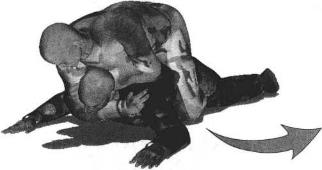 1、 右臂自对方脖颈下穿过后要迅速抓住对方左侧肩头防止其滚动逃脱。