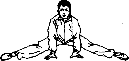 (1)开裆展髓,挺胸立腰,两腿伸直。