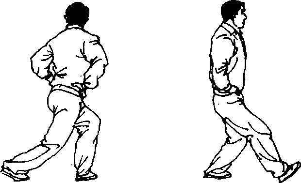 (2)右脚轻轻提起,收拢半步,前脚掌落于左脚后 面(图125)。