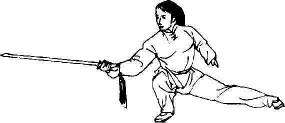 扫剑、斩剑皆为平剑向左或向右挥摆,力达剑刃。 斩剑目标为头颈,扫剑目标为腰、膝、踝、足等处。