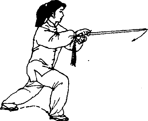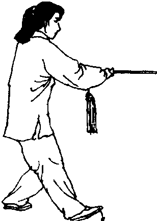 (2)带剑和弓步要上下相随,不要脱节。