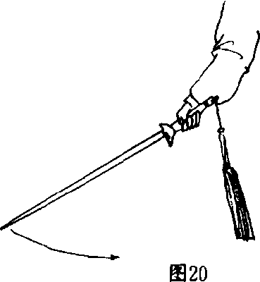 平剑,向左或向右挥摆,臂与剑成一直线,力在剑 刃(图20) 0