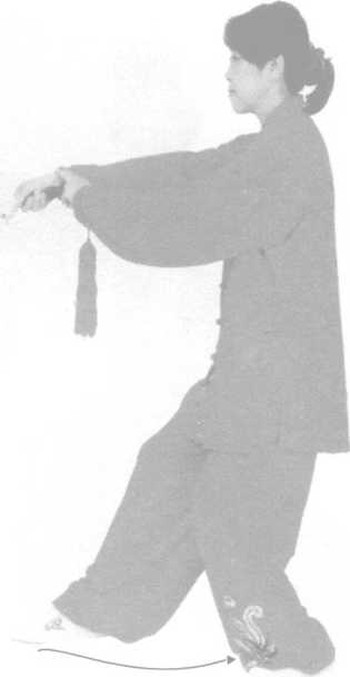 随重心前移呼气,定式时呼气止。