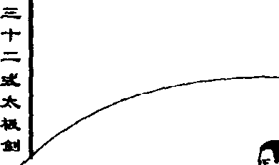 ②身体左转,左脚前进一步,成左 弓步;同时,右前臂向上弯曲,剑尖向 上挑挂,继而向前刺出(前臂内旋,手 心向外,成反立剑),力注剑尖,剑尖略 低;剑指附于右腕部;眼看剑尖(图四 十四)。