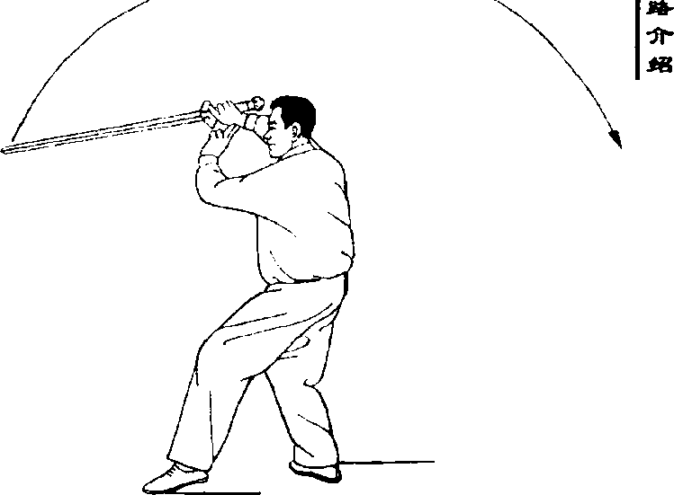 要点:剑向后绕环时,身体和眼神 随着向后转。整个动作要连贯。