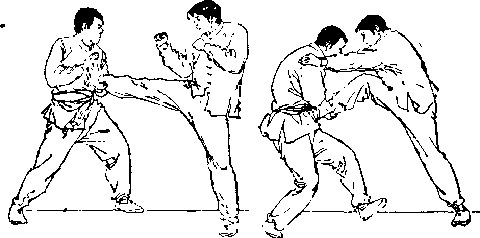 用途,一般用于防范横向型腿法被对手抱住时,防止对 手施用摔法,