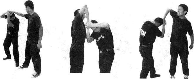 要点按手腕要紧、迅速转体、按肘快而有力。