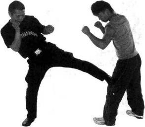 图3-4-83图3-4-83图3-4-82例2截腿封堵。图3-4-82例2截腿封堵。图3-4-84 图3-4-85图3-4-84 图3-4-85当对方用拳进攻时抢先以截腿封堵对方(图3-4-84、3-4-85)当对方用拳进攻时抢先以截腿封堵对方(图3-4-84、3-4-85)
