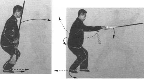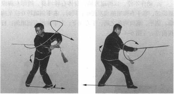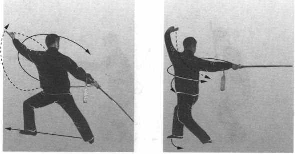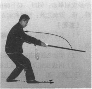 (2) 崩出之剑要借后蹬前趟之劲以发腰力,使剑出迅猛有力。