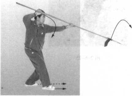 (1)图2-6-21中左脚落步,要使两脚跟在前进方向同一 直线上。