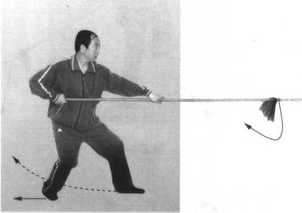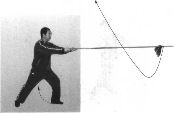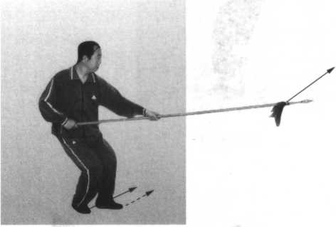 枪杆后半部始终贴身前做一支点,左右两手呼应配合,使 枪借身力而得发。