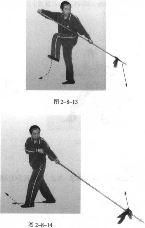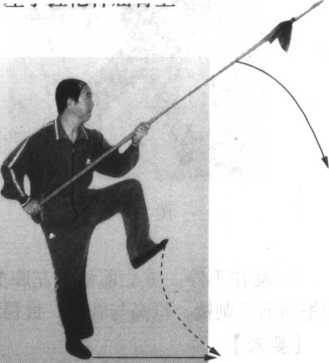 (2) 左右横拨枪时,枪头高度与膝平,左右横拨距离约二 尺,力点在枪头处。