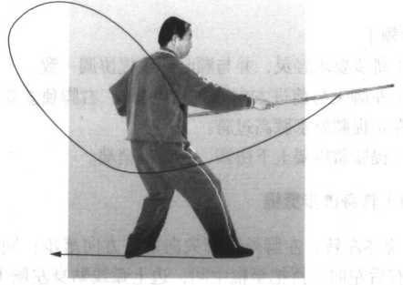 (2) 借助上步,后捋左把,下劈右把,使劈棍劲达棍前 端。