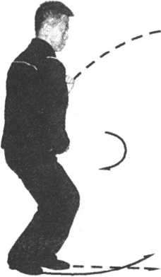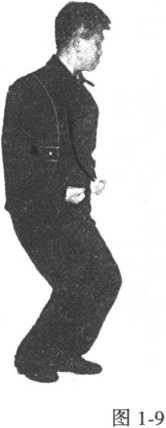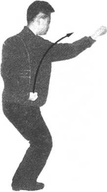 一向后,相拧相撑借右拧腰而发劲。且必须与 右脚踩落上下一体。