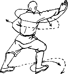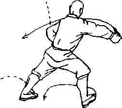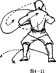 “背后敌人来势曲,转身调背不迟停?