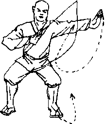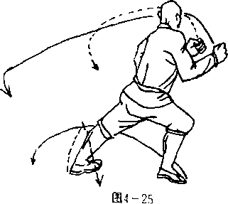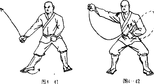 实故应用:主要用于扫击 四面来敌,是防身护体之法。