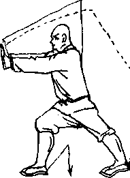 实战应用:马步站桩是对 付敌人横击,两掌外推是防护 两侧不受敌人攻击。