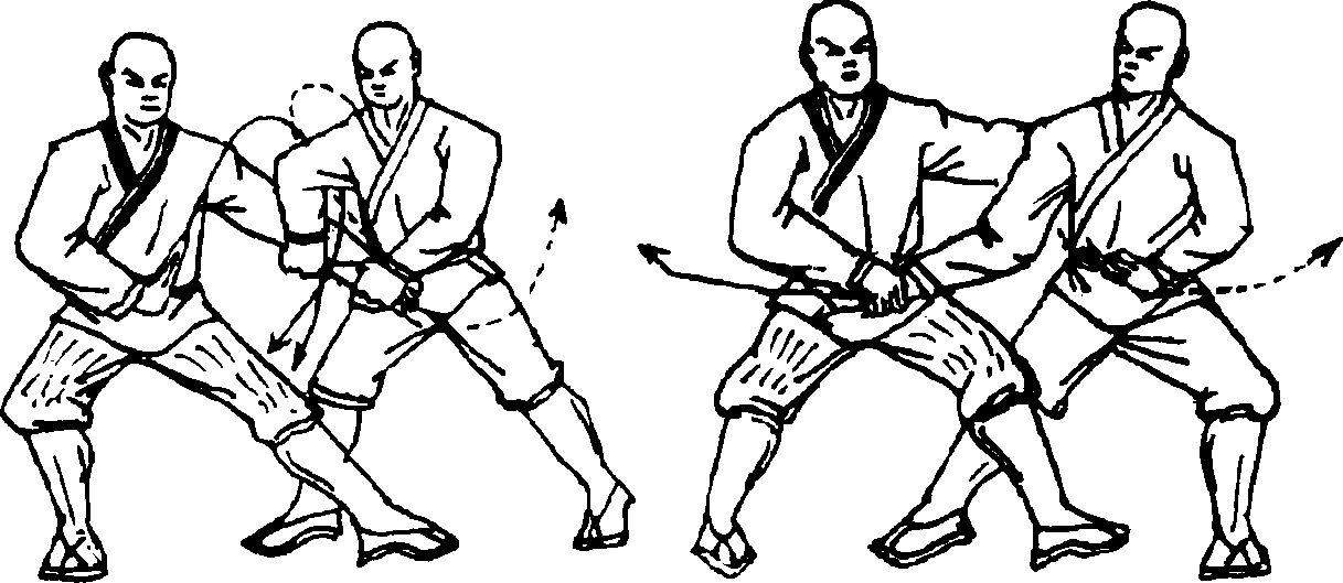 乙两腿变成左横弓步同时右手被拿左臂屈肘左掌