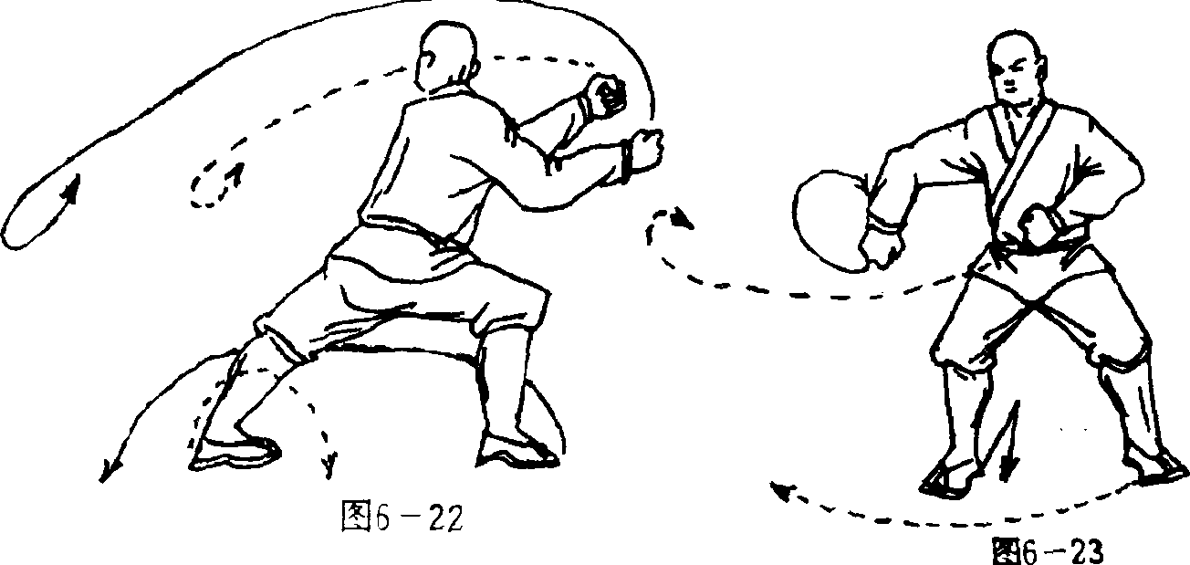 头左后上侧掌心斜向左掌指斜向上目视前方(图6-17)