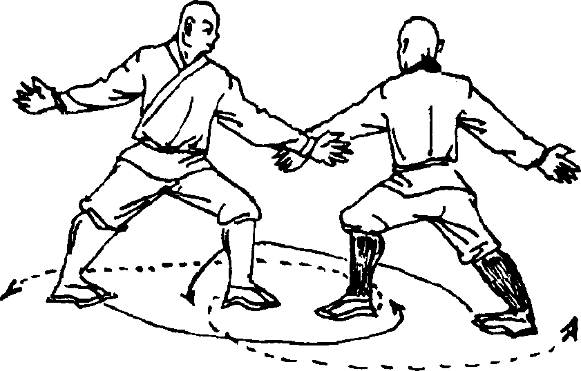 甲乙双方先抬右脚、后抬左脚向左旋跳2701双方换