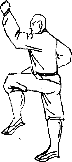 腿屈膝提起膝关节上可放50斤沙装左右腿屈膝提起膝关节上可放50斤沙装左右两腿交替练习。若能一腿站立两至三小时,两腿交替练习。若能一腿站立两至三小时,独立步即算练成。此后可配合挑拳、架捶、棚掌推掌、冲拳、剪手等手上动作练习