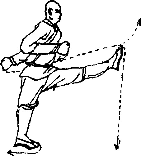 金鸡蹬胭三、金鸡蹬胭右脚后撤、右腿直立支撑,右脚后撤、右腿直...