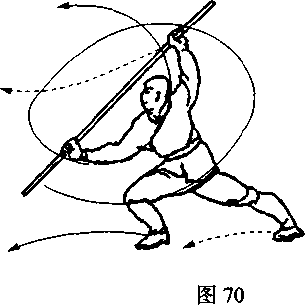 倾,目视棍下端(图70)。