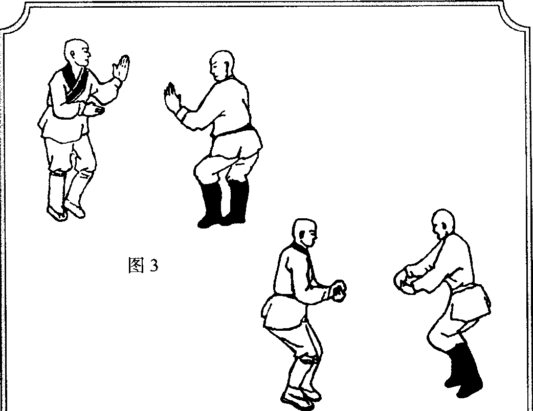 8. 甲乙交手9.乙三进锤,甲三砸手 10.甲乙双压手11.甲乙三劈掌