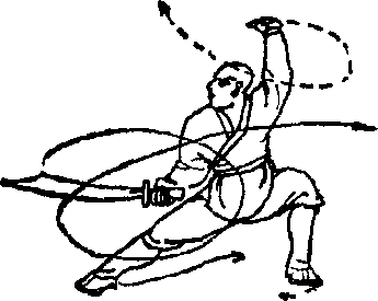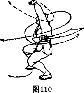 向上架于头上左侧,目视右 恻刀尖(图109)。