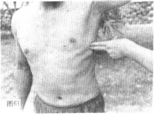 效应点后伤者腰背剧痛坐立不安。点伤左侧脾区疼痛食欲不振点伤右侧肝区疼痛甚至黄疸。此穴为活穴。