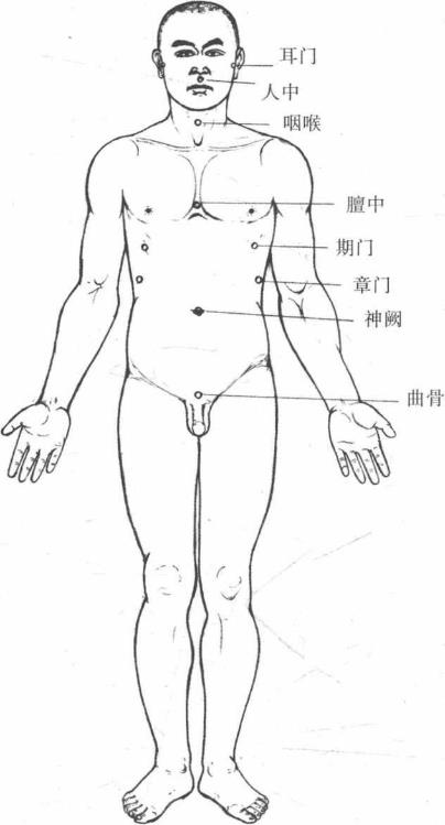 , 5心-,- 、二翌_,3曜麝麟 、、- 澳 ,-? 尊―%少林韦陀门乃少林正宗。此门技法全面其穴道点打术也独具特色。这里挑选韦陀拳之打穴精要十二势举例解析供读者参研。穴位图。(图6-1、图6-2)图6-1