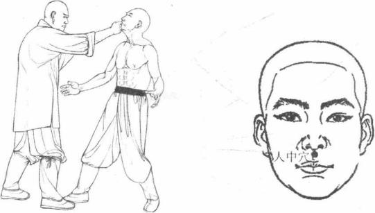 人中穴属督脉为手、足阳明督脉之会。位于上嘴唇沟的上13与下23交界处。在口轮匝肌中有上唇动、静脉布有眶下神经支及面神经颊支。被点中后头晕眼昏。