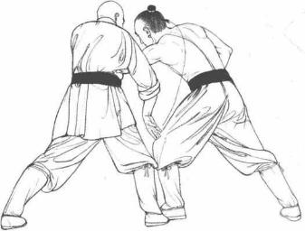 用法1-敌方滑步进身左拳击打我方面部。我方迅疾后滑步避敌拳锋芒之际两掌上起用左前臂格敌左前臂外侧化解敌拳攻击。(图4-3)2 随即我方左掌外划拿住敌方左腕同时右脚上步于敌左脚外侧左转身右上臂旋格敌左上臂外侧使敌向我方左侧前扑。(图4-4)3 动作不停我方右手旋转上翻鸡心捶击敌头后脑户穴。(图4-5)脑空穴脑空穴脑空穴脑空穴穴位脑户穴督脉、足太阳膀胱经之会。位于人体的头部后发际正中直上25寸风府穴上15寸枕外隆凸的上缘凹陷处°在左右枕骨肌之间有左右枕动、静脉分支深层藏有血管布有枕大神经分支。