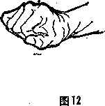 食二指紧贴中指的中节处手背成弓状(图13)该拳印堂、天突等穴位。