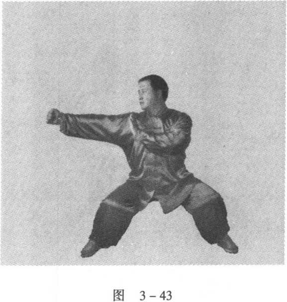 拳面,与胸同高;眼向右平视(图3-43)。