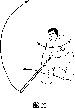 注:(图22)与(图21)动作相同,只是分左右。要求一 致,即变换交手,调把要快速、迅猛、灵活自如;身械协调一 致,一气呵成。