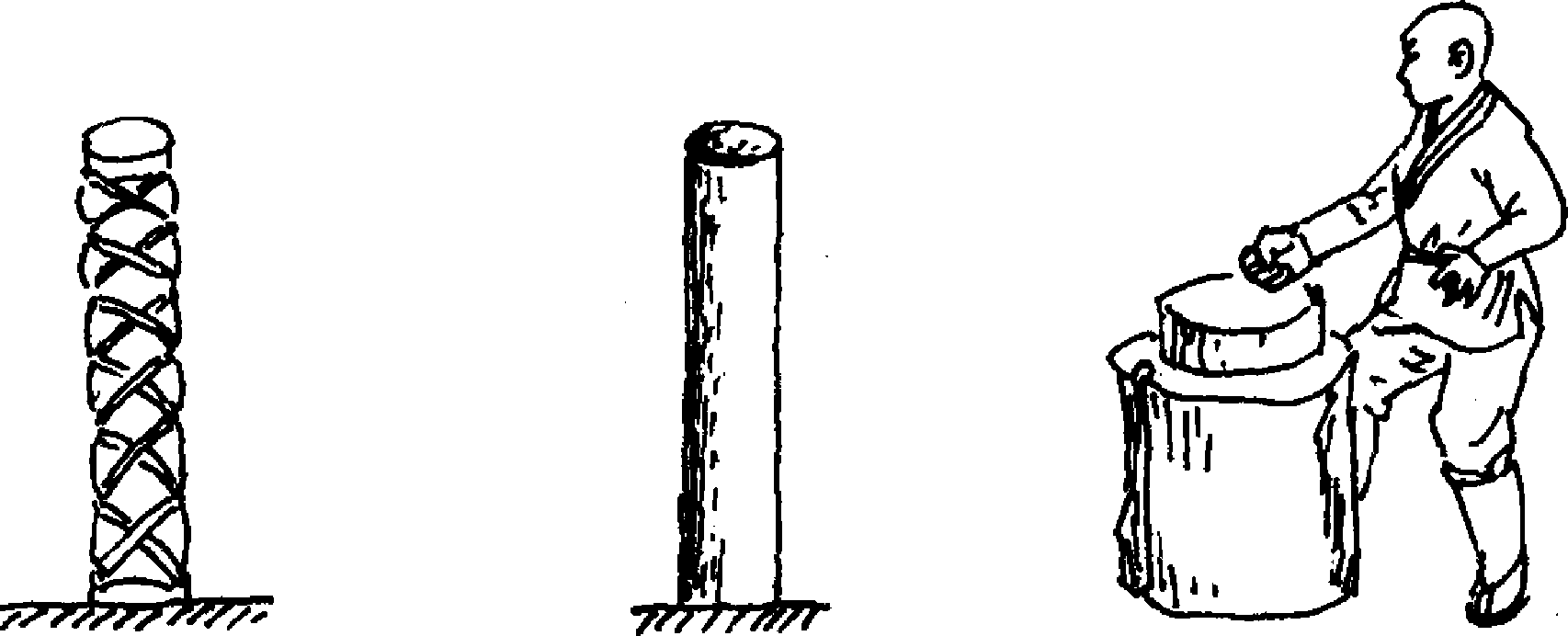 桩功有棉桩和木桩两种。选一根长250厘米,直径15厘米左