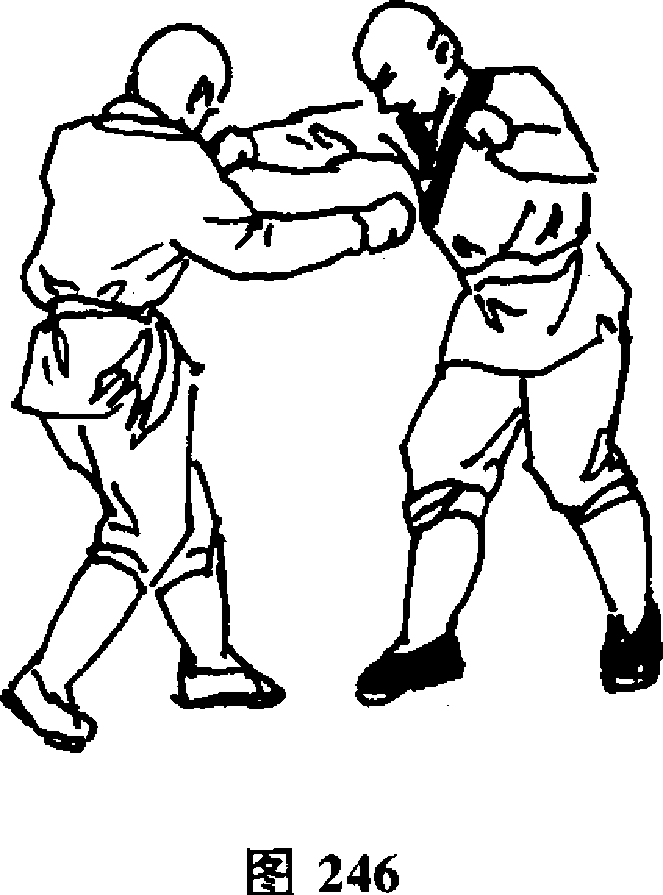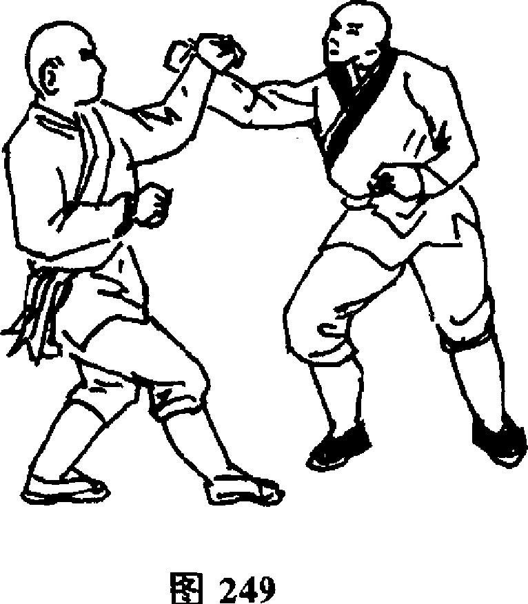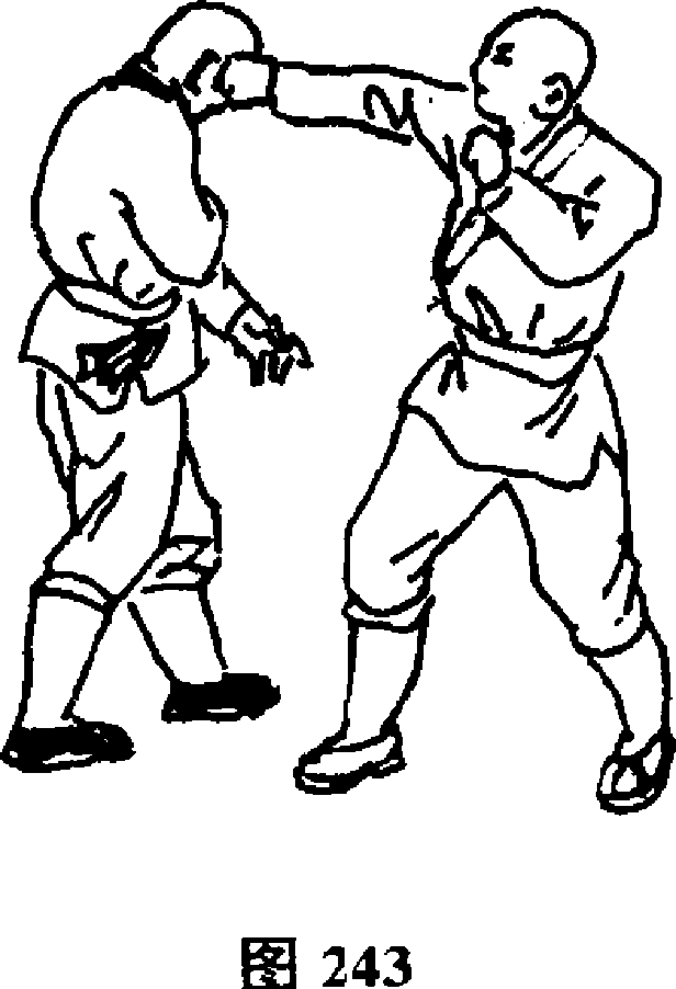 设想;敌我双方对视(图244)。敌以左手从下向上掏击我腹